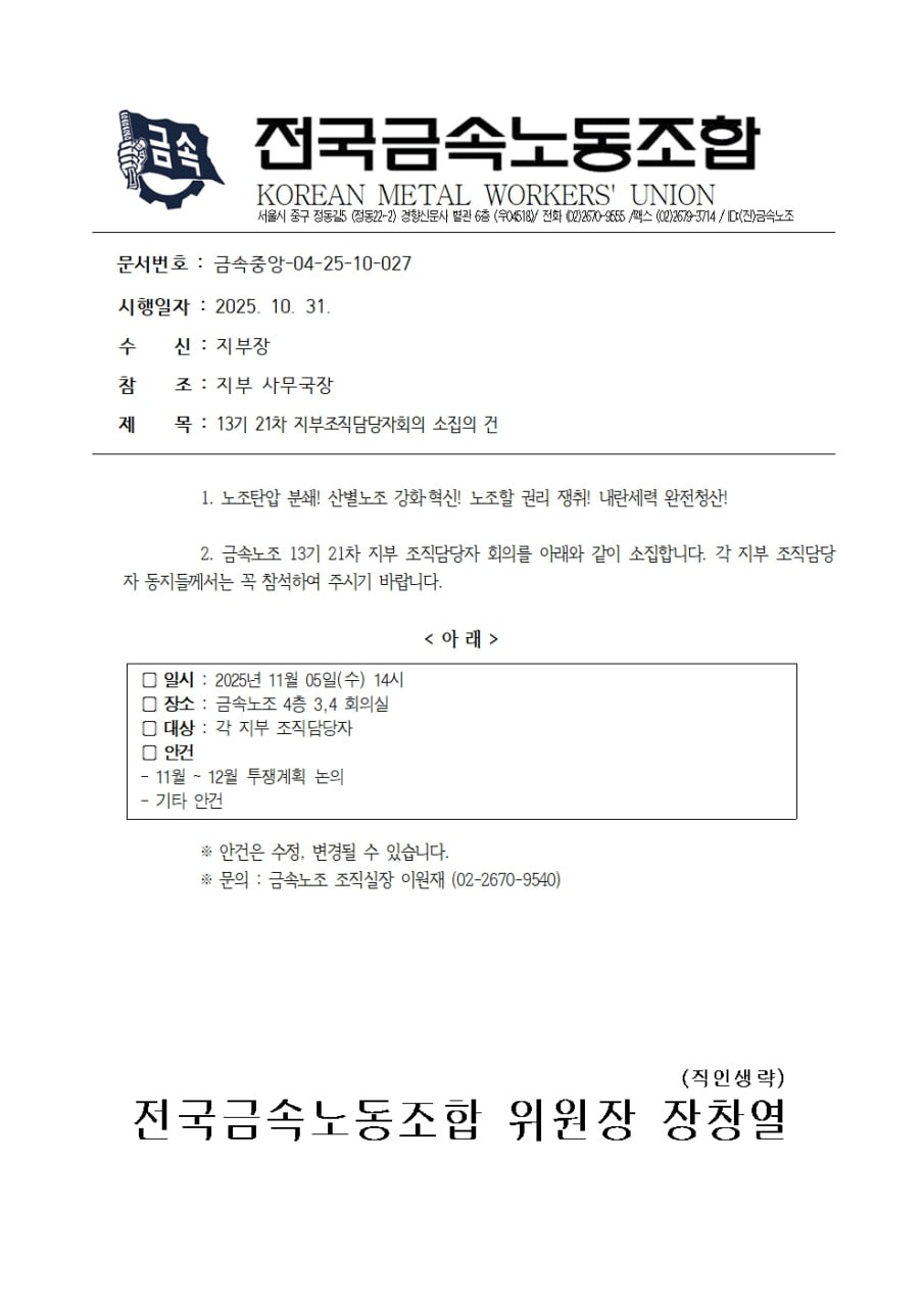 (11/05) 13±â 21Â÷ ÁöºÎÁ¶Á÷´ã´çȸÀÇ ¼ÒÁýÀÇ °Ç