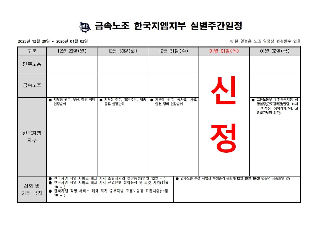 2025³â 12¿ù 29ÀÏ ~ 1¿ù 2ÀÏ ÁÖ°£ÀÏÁ¤Ç¥ ÀÔ´Ï´Ù