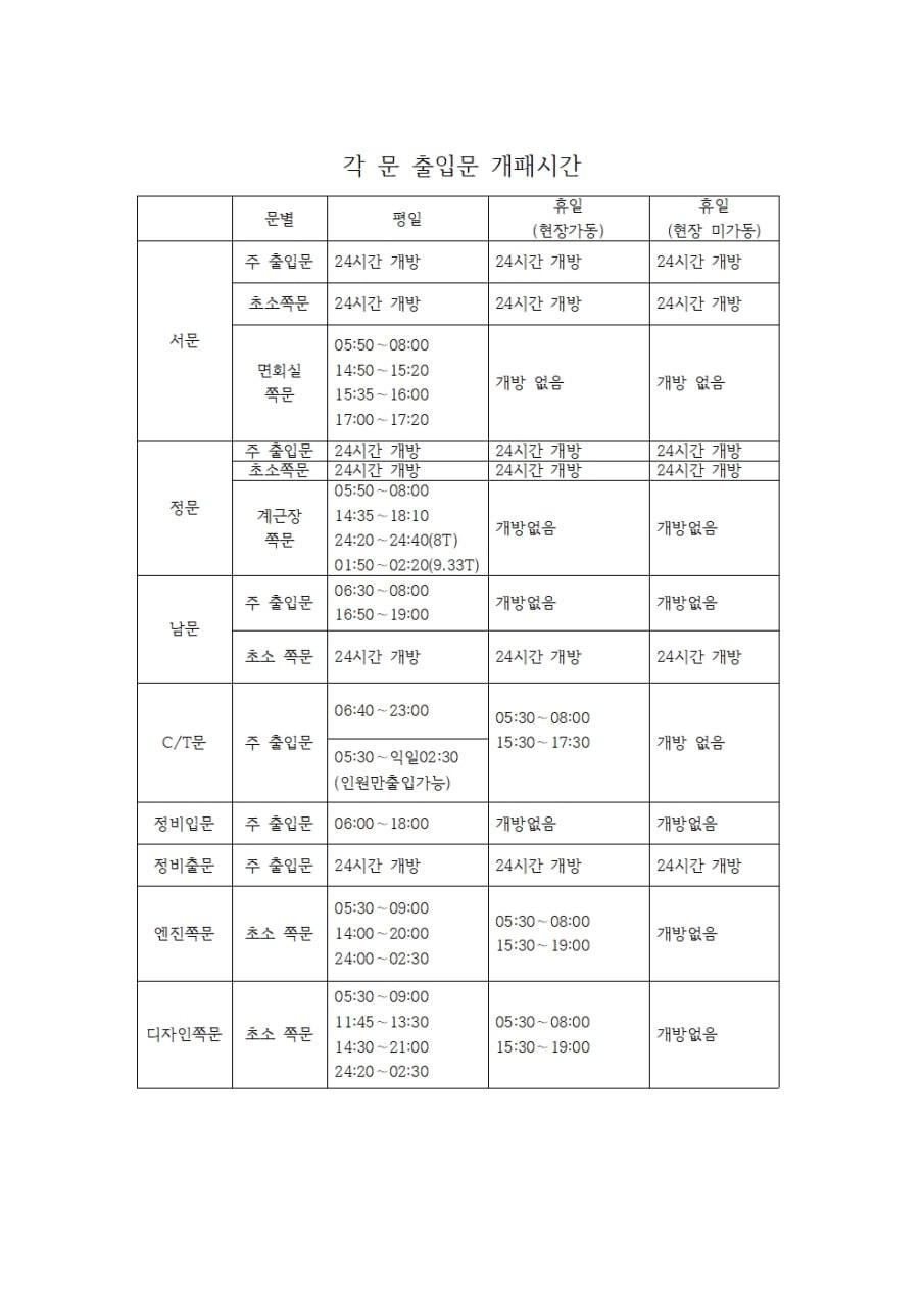 (2026³â 01¿ù14ÀÏ ±âÁØ) °¢ ¹® ÃâÀÔ¹® °³Æó½Ã°£