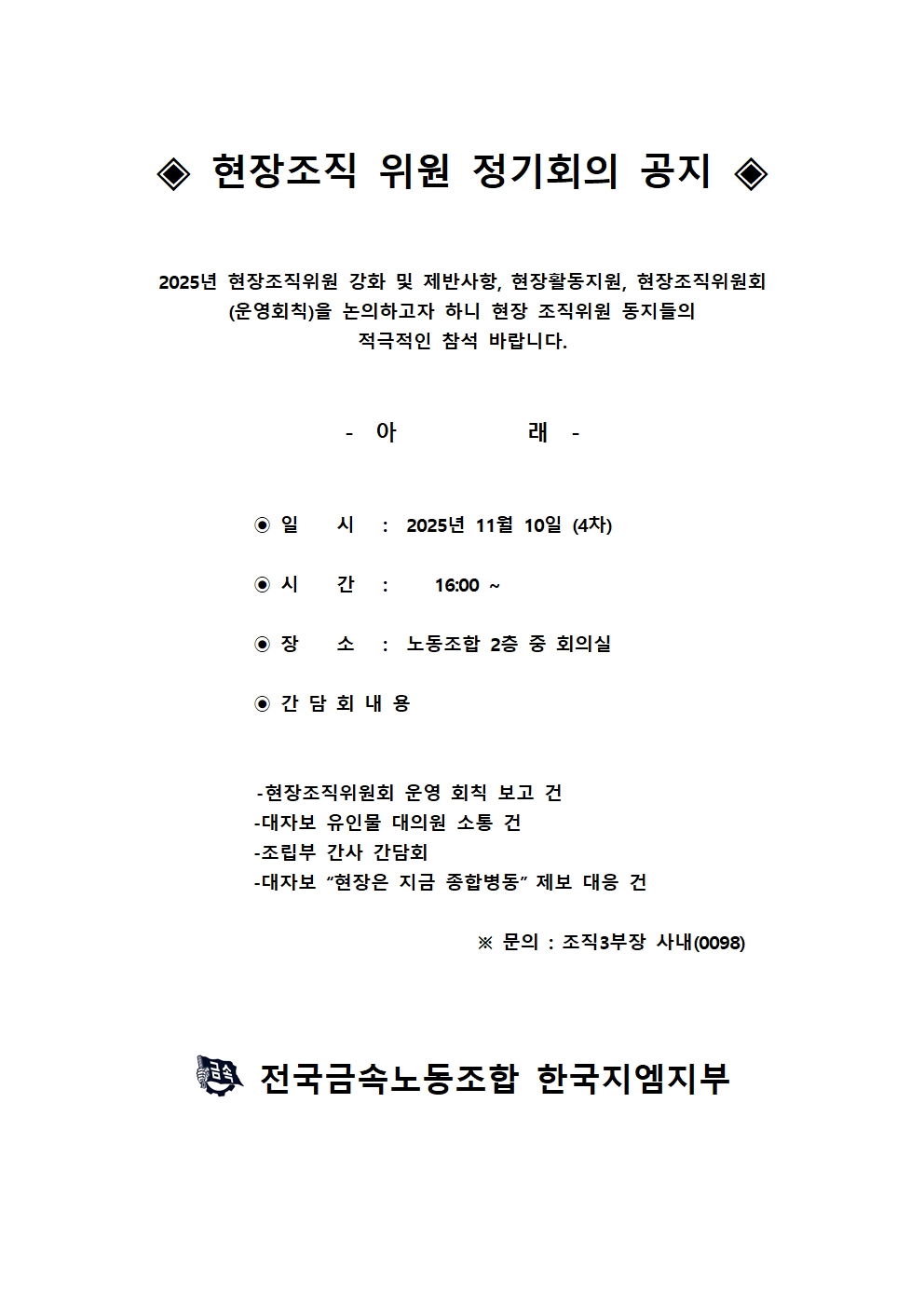 (11/10) ÇöÀåÁ¶Á÷ À§¿ø Á¤±âȸÀÇ °øÁö -4Â÷-