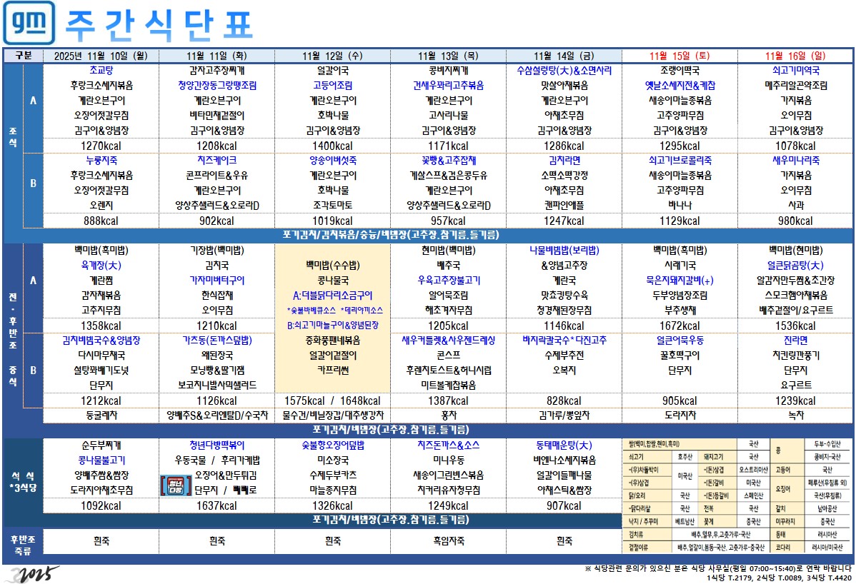 2025³â 11¿ù 10ÀÏ ~ 11¿ù 16ÀÏ ÁÖ°£½Ä´ÜÇ¥ÀÔ´Ï´Ù.